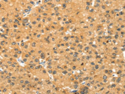 The image on the left is immunohistochemistry of paraffin-embedded Human liver cancer tissue using CSB-PA224595(SMYD3 Antibody) at dilution 1/30, on the right is treated with fusion protein. (Original magnification: ×200)