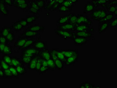 Immunofluorescent analysis of Hela cells using CSB-PA00974A0Rb at dilution of 1:100 and Alexa Fluor 488-congugated AffiniPure Goat Anti-Rabbit IgG(H+L)