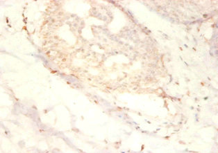 Immunohistochemistry of paraffin-embedded human mammary gland tissue using CSB-PA01535A0Rb at dilution of 1:50