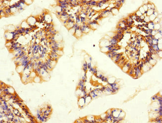 Immunohistochemistry of paraffin-embedded human small intestine tissue using CSB-PA850423ESR1HU at dilution of 1:100