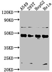 Positive WB detected in: A549 whole cell lysate, 293T whole cell lysate, HepG2 whole cell lysate, Hela whole cell lysate
