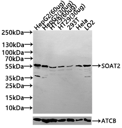 The SOAT2 antibody is recommended for use in ELISA, WB, and IHC applications. This SOAT2 polyclonal antibody specifically recognizes and binds to the human SOAT2 protein, facilitating the detection and quantification of SOAT2 expression in cells and tissues.
