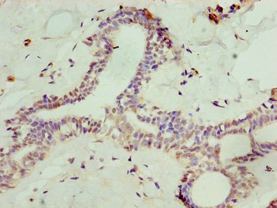 Immunohistochemistry of paraffin-embedded human breast cancer using CSB-PA858415ESR1HU at dilution of 1:100
