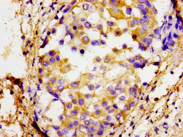 Immunohistochemistry of paraffin-embedded human breast cancer using CSB-PA022419LA01HU at dilution of 1:100