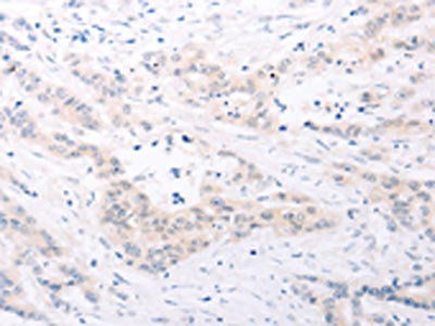 The image on the left is immunohistochemistry of paraffin-embedded Human lung cancer tissue using CSB-PA275207(SPATA16 Antibody) at dilution 1/25, on the right is treated with fusion protein. (Original magnification: ×200)