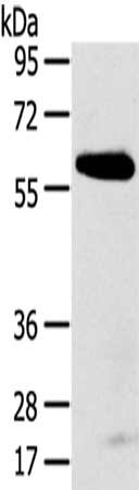 Gel: 8%SDS-PAGE,Lysate: 40 μg,,Primary antibody: CSB-PA308950(SPATA18 Antibody) at dilution 1/250 dilution,Secondary antibody: Goat anti rabbit IgG at 1/8000 dilution,Exposure time: 5 minutes