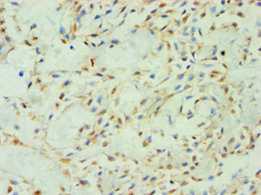 Immunohistochemistry of paraffin-embedded human breast cancer using CSB-PA859828ESR2HU at dilution of 1:100