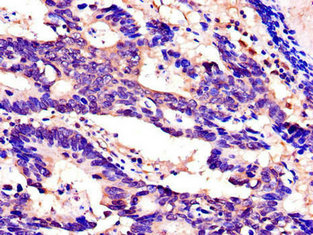 Immunohistochemistry of paraffin-embedded human colon cancer using CSB-PA022575LA01HU at dilution of 1:100