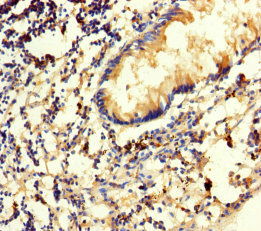 Immunohistochemistry of paraffin-embedded human appendix tissue using CSB-PA01115A0Rb at dilution of 1:100