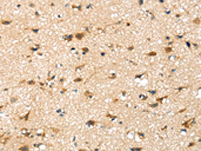 The image on the left is immunohistochemistry of paraffin-embedded Human brain tissue using CSB-PA792007(SRPX Antibody) at dilution 1/30, on the right is treated with fusion protein. (Original magnification: ×200)