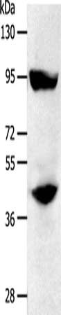 Gel: 10%SDS-PAGE, Lysate: 50 μg, Lane: SKOV3 cells, Primary antibody: CSB-PA105672(STAT5B Antibody) at dilution 1/200, Secondary antibody: Goat anti rabbit IgG at 1/8000 dilution, Exposure time: 1 minute