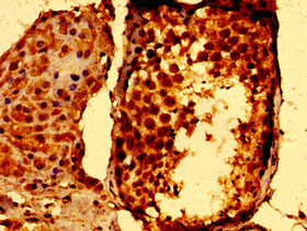 Immunohistochemistry of paraffin-embedded human testis tissue using CSB-PA022815LA01HU at dilution of 1: 100