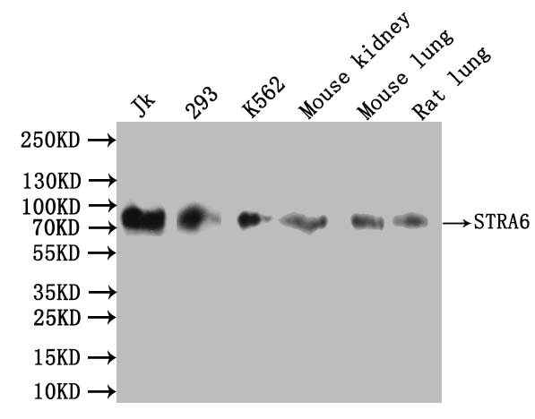All lanes:STRA6 Antibody at 1:1000