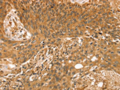 The image on the left is immunohistochemistry of paraffin-embedded Human esophagus cancer tissue using CSB-PA225382(STX10 Antibody) at dilution 1/35, on the right is treated with fusion protein. (Original magnification: ×200)