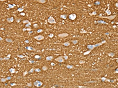 The image on the left is immunohistochemistry of paraffin-embedded Human brain tissue using CSB-PA088228(STXBP1 Antibody) at dilution 1/20, on the right is treated with fusion protein. (Original magnification: ×200)