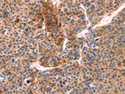 The image on the left is immunohistochemistry of paraffin-embedded Human liver cancer tissue using CSB-PA297913(STXBP2 Antibody) at dilution 1/20, on the right is treated with fusion protein. (Original magnification: ×200)