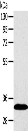 Gel: 8%SDS-PAGE, Lysate: 40 μg, Lane: Human fetal liver tissue, Primary antibody: CSB-PA590135(SULT2A1 Antibody) at dilution 1/650, Secondary antibody: Goat anti rabbit IgG at 1/8000 dilution, Exposure time: 1 second