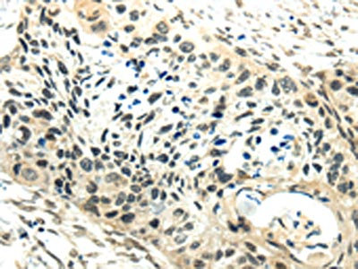 The image on the left is immunohistochemistry of paraffin-embedded Human esophagus cancer tissue using CSB-PA978337(SYNCRIP Antibody) at dilution 1/30, on the right is treated with synthetic peptide. (Original magnification: ×200)