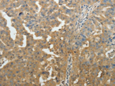The image on the left is immunohistochemistry of paraffin-embedded Human ovarian cancer tissue using CSB-PA216465(SYT6 Antibody) at dilution 1/40, on the right is treated with fusion protein. (Original magnification: ×200)