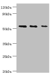 Predicted band size: 55, 50 kDa