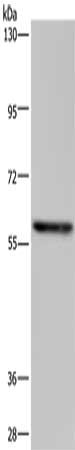 Gel: 6%SDS-PAGE, Lysate: 40 μg, Lane: 293T cells, Primary antibody: CSB-PA269153(TAB1 Antibody) at dilution 1/350, Secondary antibody: Goat anti rabbit IgG at 1/8000 dilution, Exposure time: 20 seconds