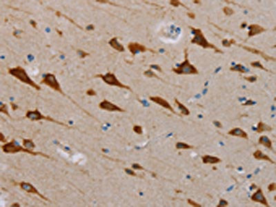 The image is immunohistochemistry of paraffin-embedded Human brain tissue using CSB-PA133615(TAB3 Antibody) at dilution 1/25. (Original magnification: ×200)