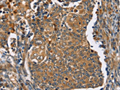 The image on the left is immunohistochemistry of paraffin-embedded Human cervical cancer tissue using CSB-PA548507(TAC1 Antibody) at dilution 1/25, on the right is treated with fusion protein. (Original magnification: ×200)