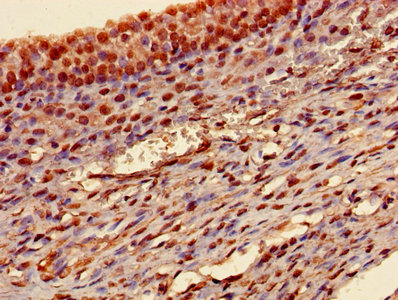 Immunohistochemistry of paraffin-embedded human ovarian cancer using CSB-PA00804A0Rb at dilution of 1:100