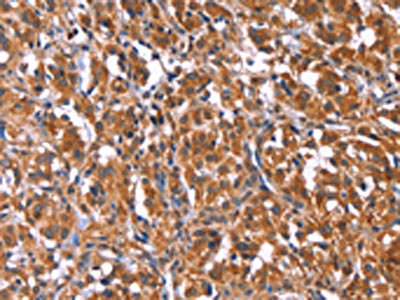 The image on the left is immunohistochemistry of paraffin-embedded Human gastic cancer tissue using CSB-PA295592(TDP2 Antibody) at dilution 1/40, on the right is treated with synthetic peptide. (Original magnification: ×200)