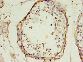 Immunohistochemistry of paraffin-embedded human testis tissue using CSB-PA023413LA01HU at dilution of 1:100