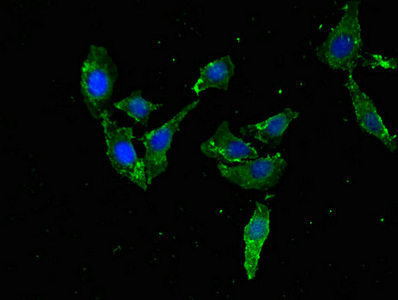 Immunofluorescent analysis of Hela cells using CSB-PA023429EA01HU at dilution of 1:100 and Alexa Fluor 488-congugated AffiniPure Goat Anti-Rabbit IgG(H+L)