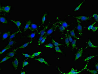 Immunofluorescent analysis of Hela cells using CSB-PA889078LA01HU at dilution of 1:100 and Alexa Fluor 488-congugated AffiniPure Goat Anti-Rabbit IgG(H+L)