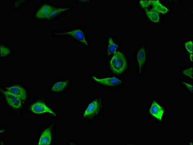 Immunofluorescent analysis of Hela cells using CSB-PA023595LA01HU at dilution of 1:100 and Alexa Fluor 488-congugated AffiniPure Goat Anti-Rabbit IgG(H+L)