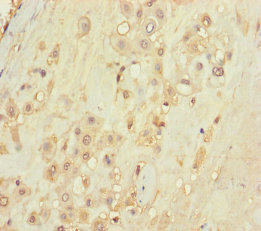 Immunohistochemistry of paraffin-embedded human placenta tissue using CSB-PA897282HA01HU at dilution of 1:100