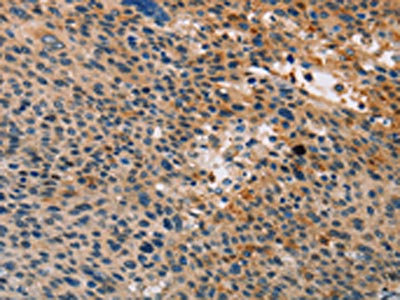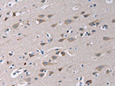 The image on the left is immunohistochemistry of paraffin-embedded Human brain tissue using CSB-PA953581(TLR1 Antibody) at dilution 1/20, on the right is treated with fusion protein. (Original magnification: ×200)