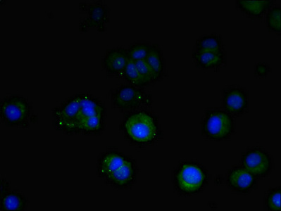 Immunofluorescent analysis of MCF-7 cells using CSB-PA023626ESR2HU at dilution of 1:100 and Alexa Fluor 488-congugated AffiniPure Goat Anti-Rabbit IgG(H+L)