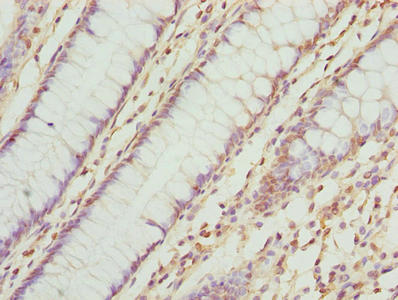 Immunohistochemistry of paraffin-embedded human colon cancer using CSB-PA023713LA01HU at dilution of 1:100