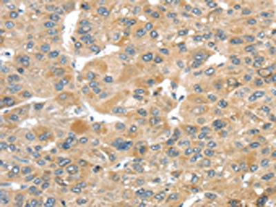 The image on the left is immunohistochemistry of paraffin-embedded Human liver cancer tissue using CSB-PA824584(TMEM161A Antibody) at dilution 1/30, on the right is treated with fusion protein. (Original magnification: ×200)