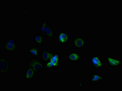 Immunofluorescent analysis of MCF-7 cells using CSB-PA023770LA01HU at dilution of 1:100 and Alexa Fluor 488-congugated AffiniPure Goat Anti-Rabbit IgG(H+L)