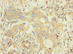 Immunohistochemistry of paraffin-embedded human pancreatic cancer using CSB-PA023770LA01HU at dilution of 1:100