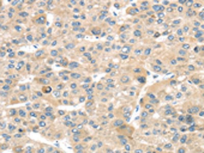 The image on the left is immunohistochemistry of paraffin-embedded Human liver cancer tissue using CSB-PA565802(TMPRSS11B Antibody) at dilution 1/20, on the right is treated with fusion protein. (Original magnification: ×200)