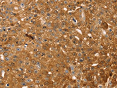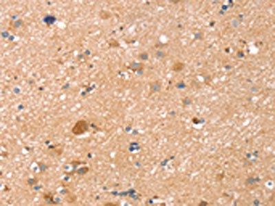 The image on the left is immunohistochemistry of paraffin-embedded Human brain tissue using CSB-PA937695(TMSB10 Antibody) at dilution 1/35, on the right is treated with synthetic peptide. (Original magnification: ×200)
