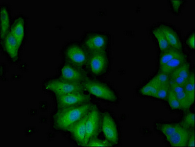 Immunofluorescent analysis of Hela cells using CSB-PA622686LA01HU at dilution of 1:100 and Alexa Fluor 488-congugated AffiniPure Goat Anti-Rabbit IgG(H+L)