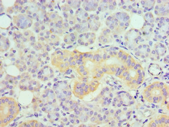 Immunohistochemistry of paraffin-embedded human pancreatic tissue using CSB-PA023979DSR2HU at dilution of 1:100