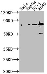 Positive WB detected in: Hela whole cell lysate, HepG2 whole cell lysate, PC-3 whole cell lysate, A549 whole cell lysate