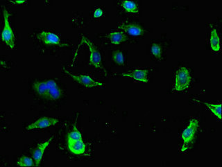 Immunofluorescent analysis of U251 cells using CSB-PA024100LA01HU at dilution of 1:100 and Alexa Fluor 488-congugated AffiniPure Goat Anti-Rabbit IgG(H+L)