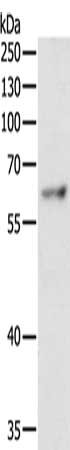 Gel: 10%SDS-PAGE, Lysate: 40 μg, Lane: Jurkat cells, Primary antibody: CSB-PA025221(TRAF3IP2 Antibody) at dilution 1/400, Secondary antibody: Goat anti rabbit IgG at 1/8000 dilution, Exposure time: 20 seconds