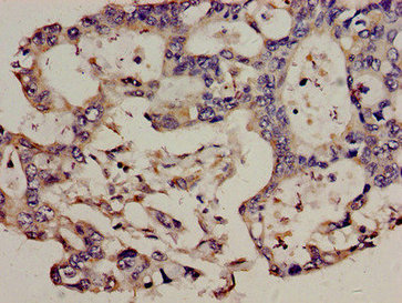 Immunohistochemistry analysis of human pancreatic cancer using CSB-PA361265LA01HU at dilution of 1:100