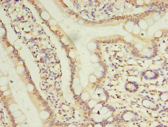 Immunohistochemistry of paraffin-embedded human small intestine tissue using CSB-PA887181LA01HU at dilution of 1:100