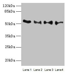 Observed band size: 53 kDa -